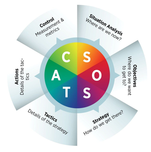 Самой популярной и известной методикой планирования маркетинговой деятельности на данный момент является методика SOSTAC (рис.4), которая включает в себя следующие модули.